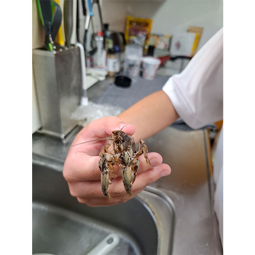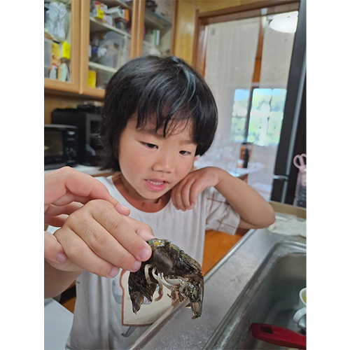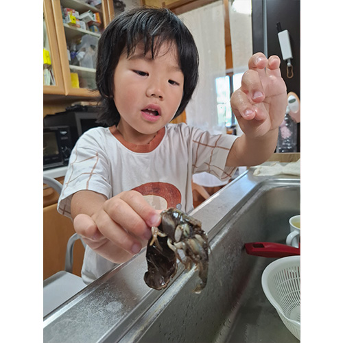 荒尾市に住んで7年目で、初めて特産のマジャクの料理の仕方を知りました。動いたまま調理し、命をいただくありがたさを改めて親子で感じました。