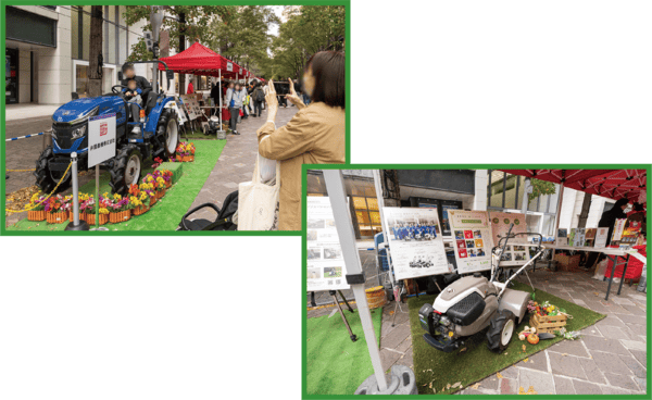 最新機種「トラクタBF シリーズ」や、農業女子コラボのミニ耕うん機「ちょこプチ」が会場に並び、来場者が運転席に乗り込んで写真を撮る姿も見られました。「農業女子プロジェクト」の紹介や井関農機の事業をまとめたパネルも展示され、農業や農業機械に触れながら楽しむ来場者の姿が印象的でした。