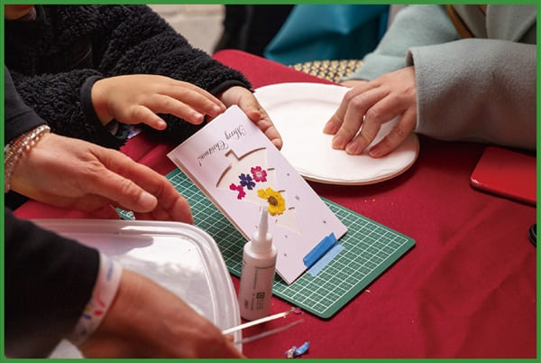 農林水産省・GREEN×EXPO 協会のブースでは、押し花アートを使ったクリスマスカードづくりが行われました。参加者は色とりどりの花や葉を選びながら、手づくりの楽しさや押し花ならではの魅力を体感。作品づくりを通して植物に親しむ様子が見られました。こうした体験をきっかけに、植物の多様性や自然との関わりについて関心を持つ参加者も多く、GREEN×EXPO2027 が掲げる理念を伝える場として、和やかな雰囲気に包まれていました。