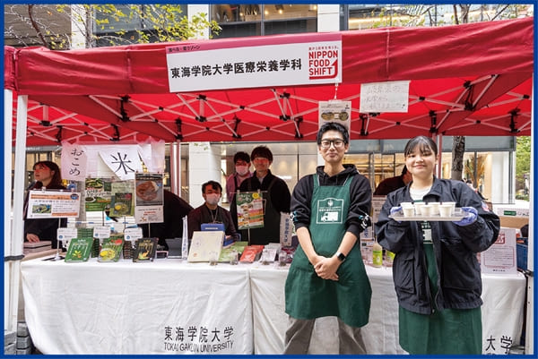 立ち寄った来場者から「岐阜県からの出展ですか?」といった声が多く聞かれ、岐阜を訪れた経験を持つ方が現地で味わった“食” の思い出を語る場面や、自身の故郷の“食” を紹介する姿も見られました。ブース周辺では、 “食”をテーマにした交流が自然と生まれていたのが印象的です。展示では、栄養学の専門性を生かし、「持続可能性」と「健康」を意識して開発した産学官連携のオリジナル商品10 品を紹介。来場者とのやり取りを通じて、エシカルな消費への理解が深まっていく様子もうかがえました。