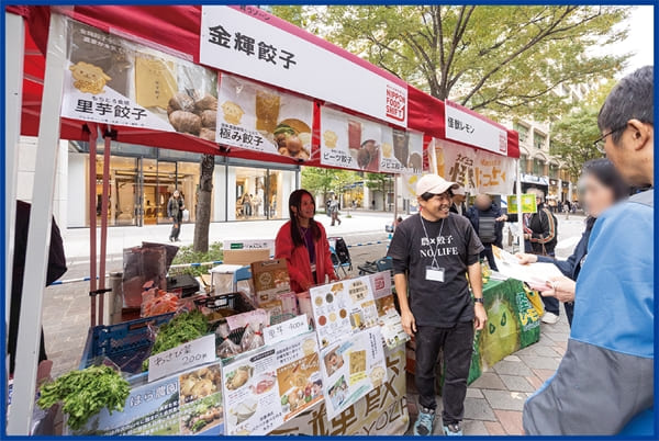 食や農への関心を持つ来場者が次々とブースを訪れ、スタッフとの会話が弾む様子が見られました。農家が手がける冷凍餃子の試食や販売、自家農園で育てた野菜の紹介にも多くの方が足を止め、味わいや栽培のこだわりについて熱心に耳を傾ける姿が印象的でした。ニッポンフードシフト事業の理念にも関心が集まり、取り組みについて質問する場面もあり、活発な情報交換が交わされていました。