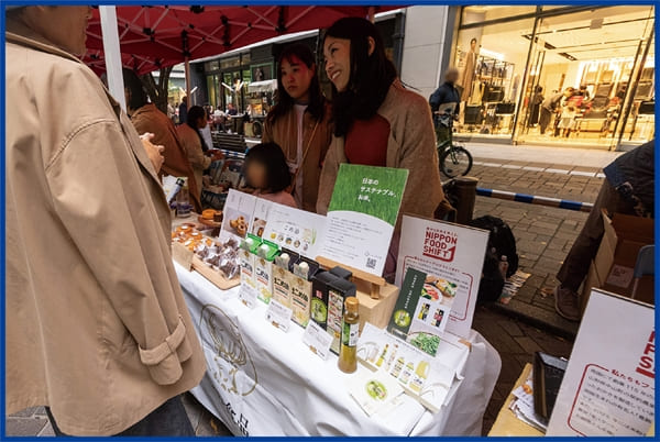 和歌山県かつらぎ町から、お米の恵みを生かし た商品を紹介するブースが出店。米ぬか100% で作った国産こめ油をはじめ、和歌山特産のぶどう山椒を使った香味油、国産米粉とこめ油を使用したグルテンフリーのスイーツが並びました。お米の副産物に新たな価値を見出す取り組みとして、「お米のあたらしい活用法」に関心を寄せる来場者の姿が見られました。