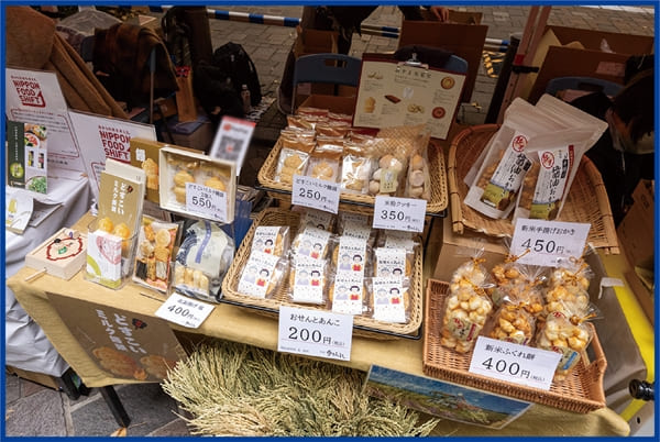 ブースには、国産米で作ったこだわりのおかきをはじめ、契約農家の新米だけで仕上げたふわっと軽い食感のおかきや、米粉を使って焼き上げたクッキーなどの焼き菓子が並びました。試食を楽しむ来場者からは「美味しい!」という声が次々とあがり、スタッフも思わず笑顔に。さらに、同じく国産素材にこだわる企業の担当者とも積極的な交流が行われ、ものづくりへの思いや取り組みを共有する場面も見られました。