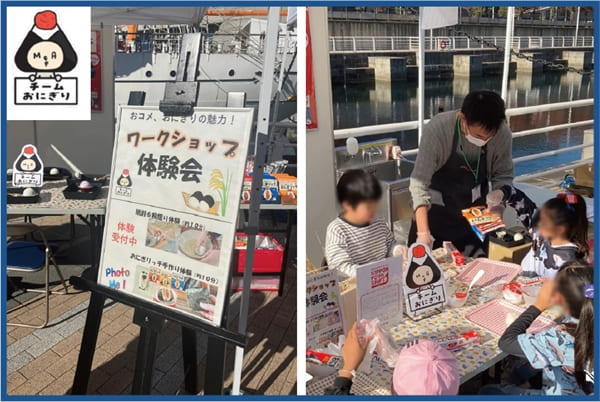 おにぎりプロジェクトでは、来場者が実際に稲穂の脱穀や籾摺り、おにぎり作りを体験するコーナーが設けられました。家族連れを中心に、はじめての作業に取り組んでいただき、米という日本の主食の成り立ちや魅力に直接触れる機会となりました。手を動かしながらおにぎりが仕上がる過程を体験することで、来場者の間に“お米と暮らし”のつながりへの理解が広がっていました。