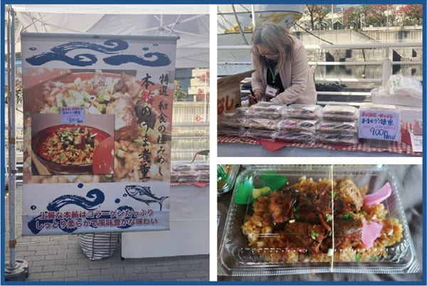会場全体に、魚に親しむきっかけとなる企画が並ぶ中、こちらのブースでは、国産本マグロの尾のみ部位と、これまで廃棄されることも多かった皮の部位を活用した「うま煮重弁当」が提供されました。尾のみは筋が強い部位ですが、加熱することでやわらかく仕上がる特徴があり、会場では多くのお子さんが味わう様子も。食材を無駄なく生かす工夫とともに、魚のおいしさを伝える機会となっていました。
