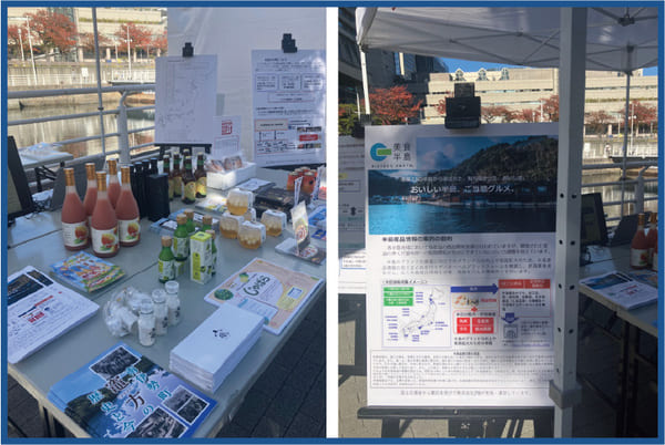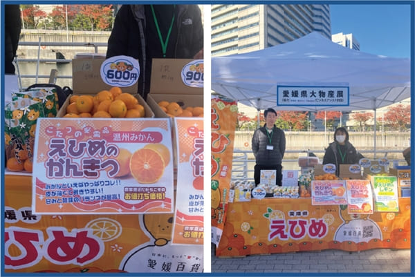 ブースでは、大きさの不揃いや外皮の傷・シミなどにより通常の流通にのらないみかんや、それらを活用した加工品が紹介されました。中身のおいしさはそのままに、食品ロス削減につながる取り組みとして、ニッポンフードシフトのコンセプトに沿った商品を来場者に伝える機会となっていました。会場では、みかんを試食するお子さんの姿も見られ、味わいを楽しむ様子が印象的でした。あわせて、楽天市場「愛媛味観箱|愛媛ファンサイト」の紹介も行い、愛媛県の食や産地への関心が広がる場となっていました。