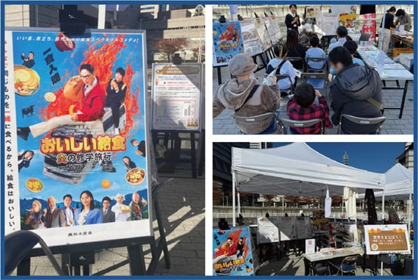 映画『おいしい給食 炎の修学旅行』(主演:市原隼人氏)と農林水産省のタイアップについて紹介し、食育や共食の大切さを伝えるパネル展示を行いました。展示には小中学生の姿も多く、内容を熱心に読み込む様子が見られました。あわせてミニ講座も実施し、クイズを交えながら食について学ぶ時間となりました。参加者からは、「『おいしい給食』シリーズが好き」「食育の大切さを改めて感じた」「みんなで食べる楽しさが伝わった」といった声も聞かれ、和やかな雰囲気の中で理解が深まっていました。