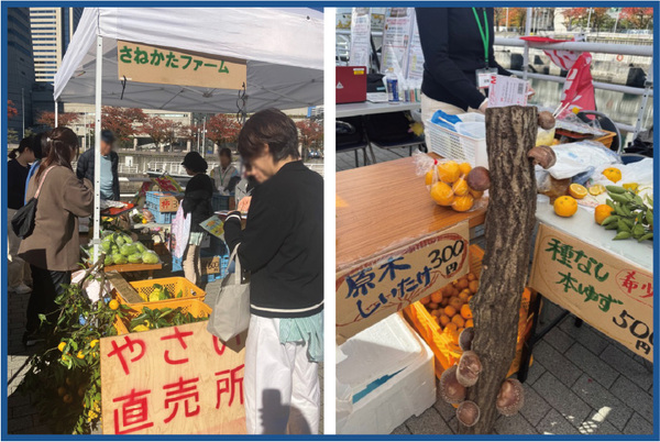 ブースでは、神奈川県産のしいたけや柿、うり、はちみつ、鬼ゆずなど、全14品目の農産物を紹介。生産者自らが背景やストーリーを伝え、試食や解説を通じて素材の魅力を来場者に届ける場面も多く見られました。あわせて、休耕地や里山の活用をテーマにした電動バイク体験も行われ、お子さんを中心に関心を集めていました。