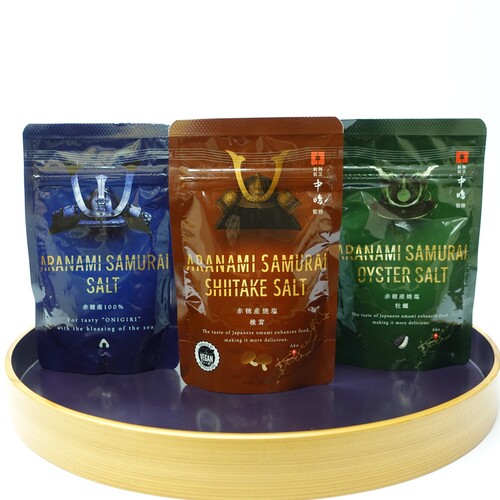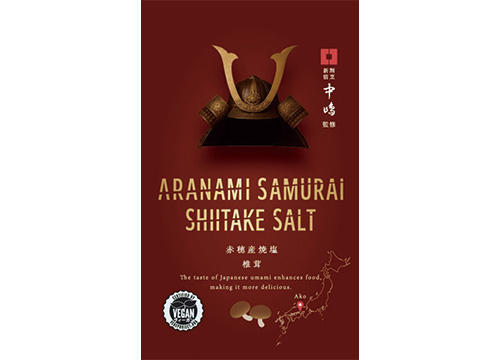 FOOD SHIFT セレクション優秀賞を受賞した ARANAMI SAMURAI SHIITAKE SALT!兵庫県赤穂産のこだわりの塩を販売。『日本の美味を海外へ』を目標に開発している SAMURAI SALT シリーズ。第一弾は『おにぎり専用の粗塩』、第二弾は『赤穂の焼塩と牡蠣がマリアージュした牡蠣塩』、第三弾は『東洋の椎茸と赤穂の焼塩のペアリングによるヴィーガン認証の椎茸塩』を開発し発売。日本の美味を海外へ展開していきましょう!