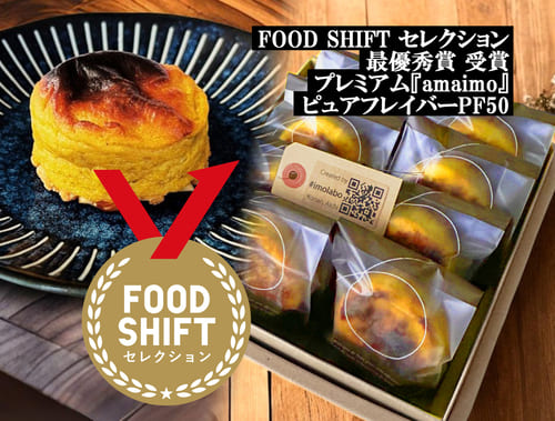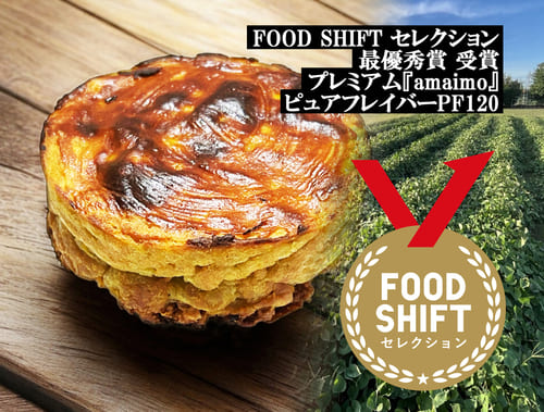 増え続ける耕作放棄地問題を知り、自分でできることからと早期退職して始めた6次化事業。放棄地を借りて自ら開墾し、栽培期間中農薬や化成肥料を使わずさつまいもを栽培。熟成も商品開発も失敗に次ぐ失敗の中で、地元パティシエとニ人三脚でスイーツ業界の非常識に挑み、砂糖も小麦粉も添加物(保存料·着色料)も使わず、素材が持つ風味と甘味を最大限に引き出すこだわりのスイートポテトを作り上げました。すべて手作りゆえ数量限定にはなりますが、FOOD SHIFT セレクション最優秀賞受賞の『amaimo」を販売します。