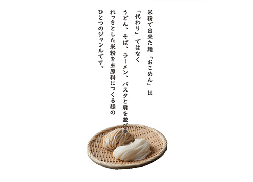江戸時代から続く米農家が「日本の農業を面白くしたい」という強い想いで開発した、お米でできた新しい麺「おこめん」。グルテンフリーで、ツルツルモチモチの新食感が特徴。原料は広島県産米など国産 100%にこだわり、地域の恵みを活かしています。増粘剤などの添加物は不使用。学校給食採用の実績が証明する安心·安全を追求し、お米の新しい価値と食文化を提案します。どんな料理にも合う汎用性と、1~2分の時短調理で、忙しい毎日に「美味しく、健康に」寄り添います。