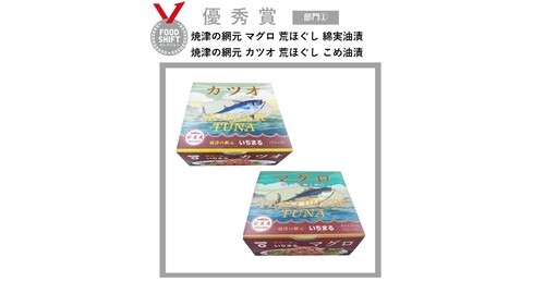 FOOD SHIFT セレクション優秀賞を受賞した、国産原料だけで作ったツナ缶「焼津の網元 カツオ 荒ほぐし こめ油漬」「焼津の網元 マグロ 荒ほぐし 綿実油漬」を販売します。当社は昔、缶詰工場で製造したツナ缶をアメリカに輸出していました。そこで、「昭和時代に作っていた本当に美味しいツナ缶を復活させたい。」と考え全ての素材を国産原料にし、野菜スープを製造当日に煮だすなど昔の作り方にこだわりました。パッケージも輸出していた時代を彷彿させるデザインにしました。