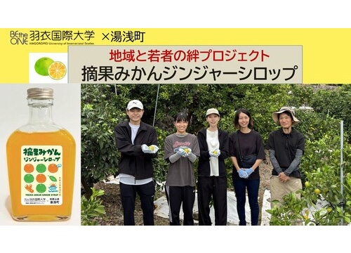 羽衣国際大学の学生が連携協定を結ぶ和歌山県湯浅町を訪問し、歴史や産物を学び、その魅力を若者の視点で発信し、町の活性化につなげる取組みをしています。その過程で、湯浅町の特産物のみかんを栽培する過程で行われる「摘果」に着目しました。廃棄される「摘果みかん」を「もったいない」と考え、原材料にして商品開発したのが「摘果みかんジンジャーシロップ」です。今回は取組みの紹介と、シロップの試飲を行います。